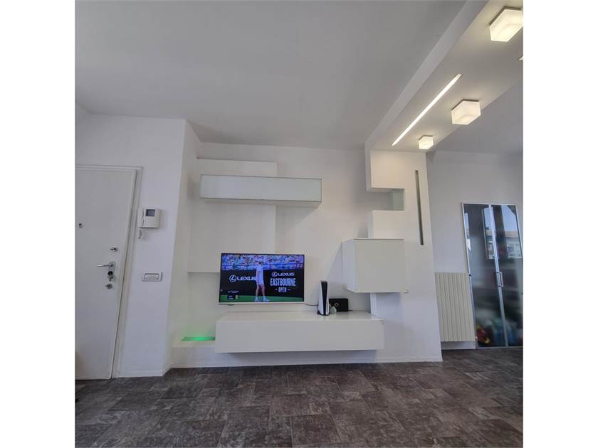 L’appartamento viene proposto con possibilità di arredamento su misura, offrendo una cucina Ar-Tre completa di piano cottura in vetro e lavello Franke in vetro. Il soggiorno è impreziosito da un tavolo in vetro con basamento in acciaio di 1,60 metri, affiancato da sei sedie, mentre la parete attrezzata e l’armadio a tutta altezza su misura nella camera assicurano ulteriore spazio e ordine. La cabina armadio è completa di assi e ripiani, e il letto contenitore in pelle è accompagnato da due comodini. L’arredo bagno e una scaffalatura su misura nel ripostiglio arricchiscono ulteriormente l’offerta. Si precisa che l’arredo non è incluso nel prezzo, ma può essere oggetto di trattativa separata qualora sia di interesse.