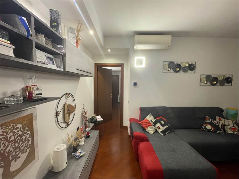 Un ampio terrazzino, accessibile direttamente dal soggiorno, rappresenta uno spazio ideale per momenti di relax all’aperto. L’immobile si distingue inoltre per le sue finiture di qualità: infissi in doppio vetro e legno, pavimentazione in ceramica e parquet nella zona giorno e nei bagni, parquet nella zona notte. Il riscaldamento è centralizzato e gestito da radiatori con termo valvole, mentre la porta d’ingresso è blindata per garantire sicurezza. Nel soggiorno è già installato uno split per l’aria condizionata, a beneficio del comfort durante tutto l’anno.