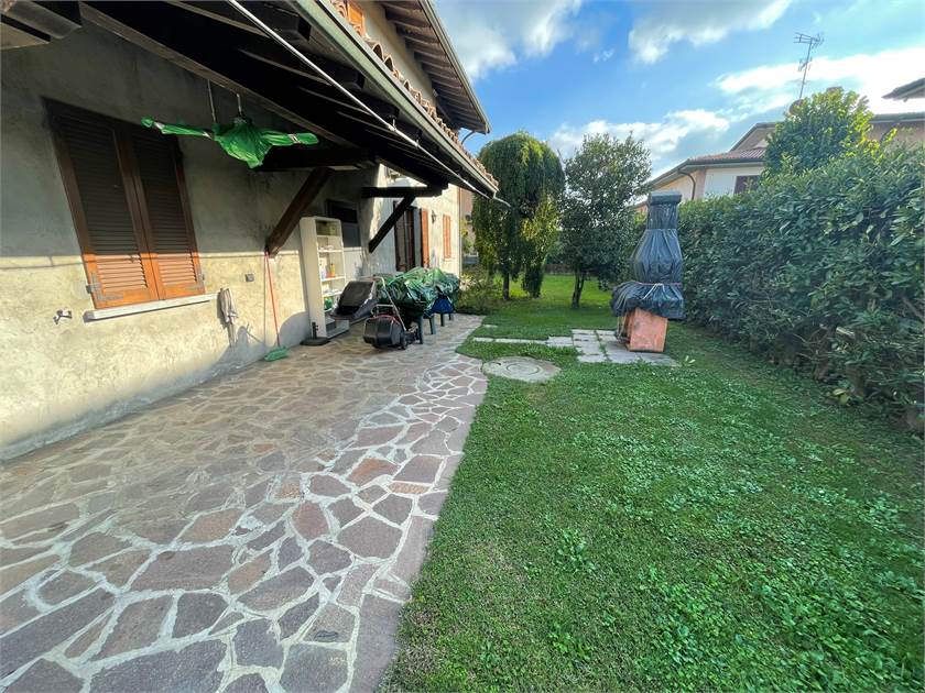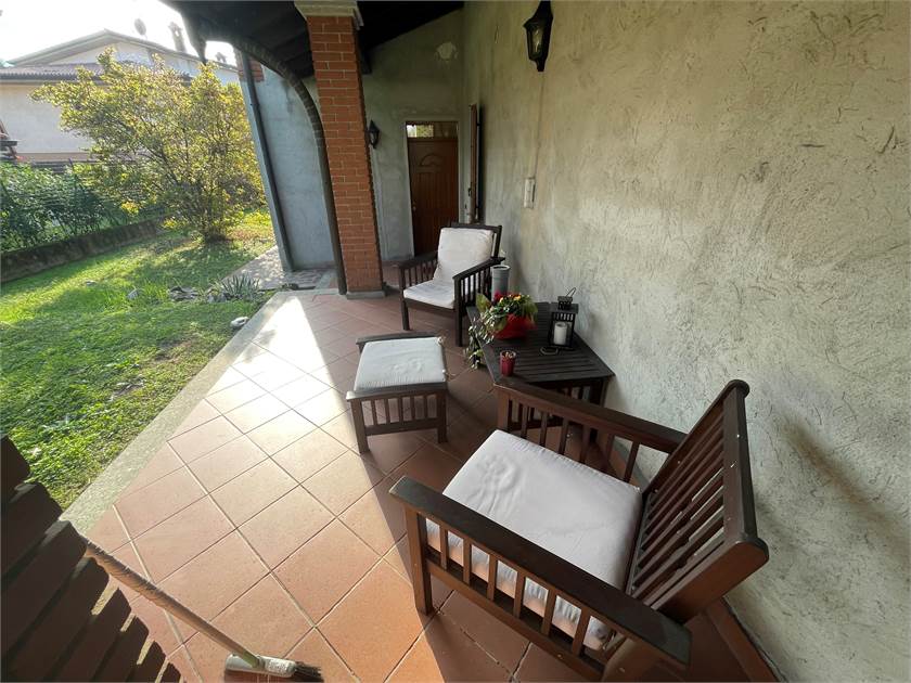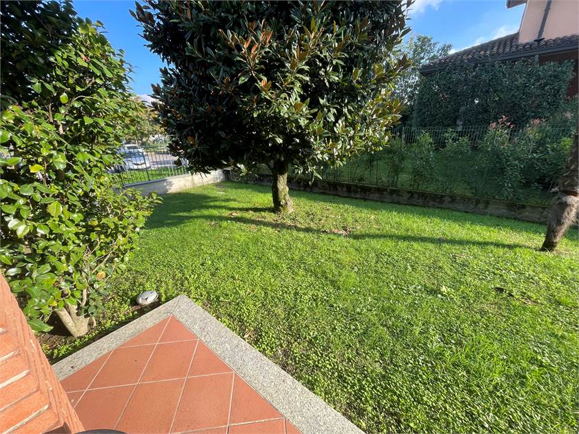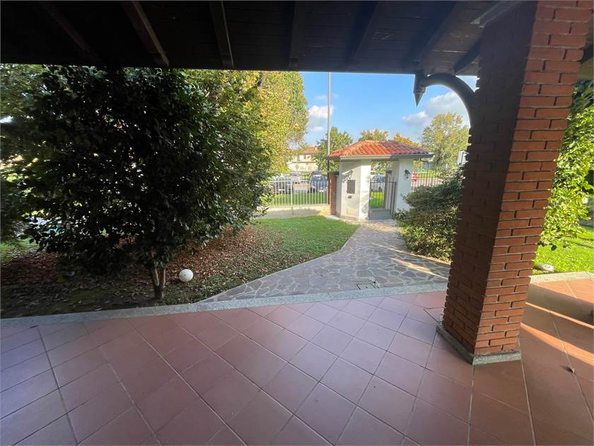 Il giardino che circonda la proprietà, curato in ogni dettaglio su tutti i lati, crea uno spazio esterno incantevole e raccolto, ideale per momenti di relax all’aperto. Le finiture di alta qualità sono evidenti in ogni ambiente della villa, conferendo un tocco di eleganza e raffinatezza.