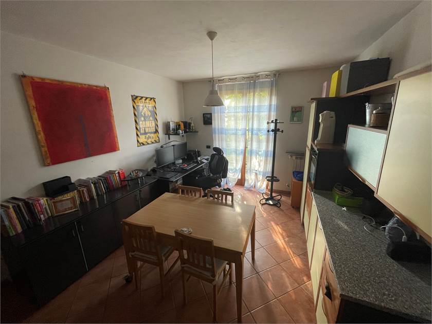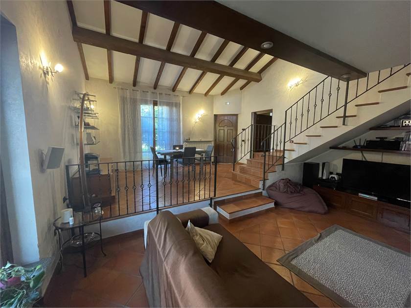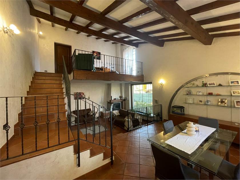 Al piano terra si accede a una spaziosa sala da pranzo caratterizzata da generose metrature, impreziosita da un soppalco e un balcone. La cucina moderna e personalizzata si affaccia direttamente sul giardino grazie alle ampie portefinestre, creando un collegamento armonioso tra l’interno e l’esterno. Completa la zona giorno un comodo bagno con doccia.